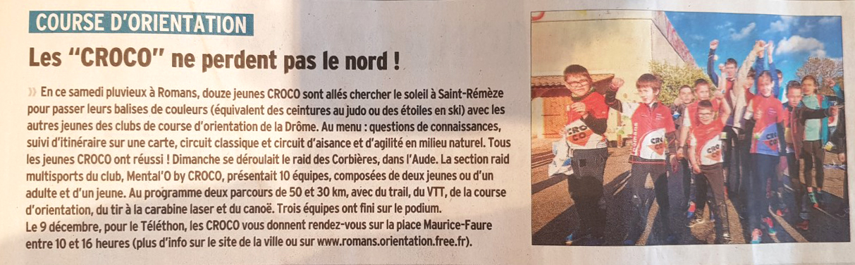 Côté résultats : à Crussol : Ben 1er du circuit Orange (H20+), Jocelyne et Rachel 4éme et 5ème dames du circuit orange (D20+), Emma et Marine 3ème et 4ème du circuit jaune (D14/16/18) et Arnaud 3ème du circuit vert (H/D 8/10/12)